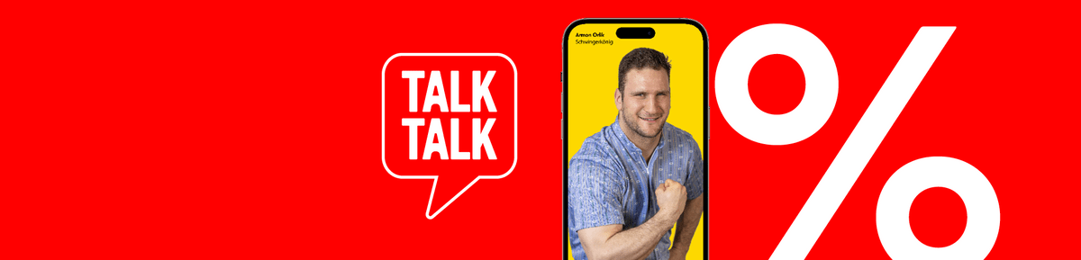 *Valido dal 6 al 19 aprile 2026 per le nuove sottoscrizioni dell'abbonamento TalkTalk ALL IN (CHF 39.95/mese invece di 99.95 al mese) per 24 mesi. Lo sconto di CHF 60.– verrà accreditato mensilmente sulla fattura. Lo sconto non sarà più applicabile dopo 24 mesi. In più, CHF 150.– in omaggio. Esclusa la scheda SIM da CHF 49.–.